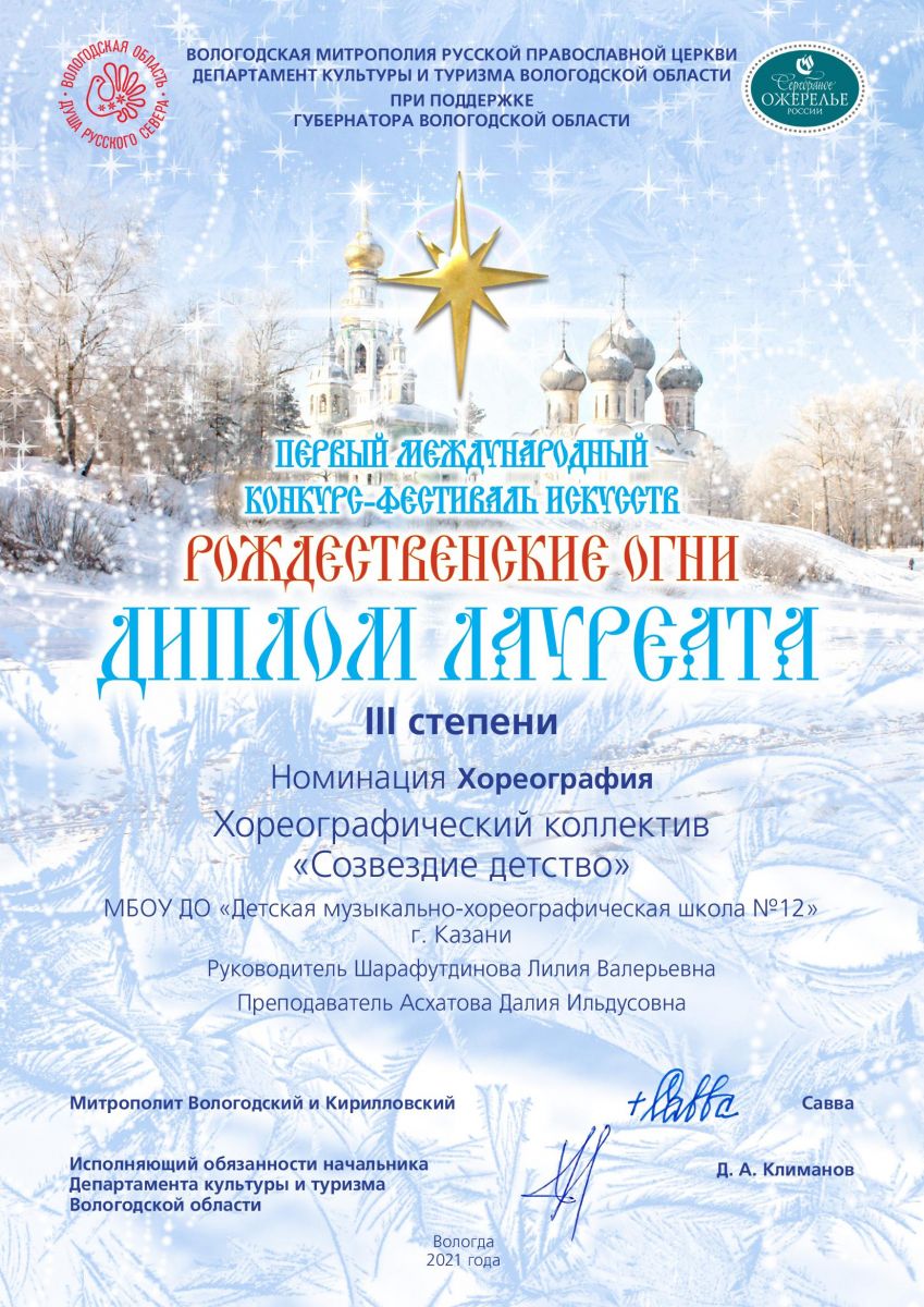 - Хореографический коллектив "Созвездие детство" - Лауреатов 3 степени (преподаватели Шарафутдинова Л.В., Асхатова Д.И.)