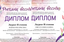 Поздравляем с успешным выступлением на Всероссийском фестиваль-конкурсе детского и юношеского творчества "Ритмы весны"