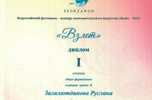 Залялютдинову Руслану - Дипломанта 1 степени Всероссийского фестиваль-конкурса исполнительского искусства "Взлет -2017" (преп. Василевицкая Е.С.). Желаем дальнейших успехов!