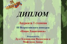 - Дуэт: Клевинская Валентина и Мифтахов Динар - Лауреаты 1 степени