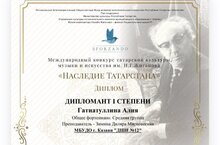 - Гатиатуллину Алию - Дипломанта 1 степени в номинации "Общее фортепиано. средняя группа". Преподаватель Зимина Д.М.