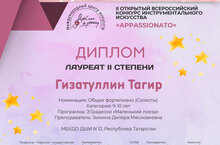 - Гизатуллина Тагира - Лауреата 2 степени в номинации "Общее фортепиано" (Солисты), 9-10 лет. преподаватель Зимина Д.М.