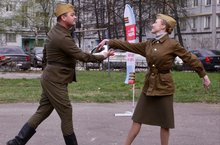 4 и 5 мая в нашем городе состоялась акция «Парад у дома ветерана», посвящённая Дню Победы. Она явилась своего рода продолжением фронтовых агитбригад. Преподаватели и обучащиеся детских школ искусств подготовили танцевальные и вокальные номера и выступили во дворах по месту жительства фронтовиков и блокадников Ленинграда. Наши преподаватели хореографического отделения Мусин Радик Витальевич и Мусина Алсу Фаридовна приняли активное участие и поздравили ветеранов.