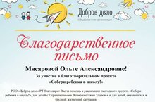Ежегодно преподаватель ДШИ №15 Мясарова Ольга Александровна оказывает помощь в реализации проекта "Собери ребенка в школу!" для детей с ограниченными возможностями здоровья и для детей, оказавшихся в трудной жизненной ситуации.