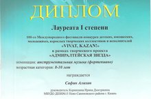 Сафин Алихан - Лауреат 1 степени (руководитель Корнишина И.Д.)