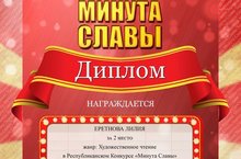 Поздравляем Еретнову Лилию (преподаватель Петров В.П.) с попбедой в Республиканском конкурсе "Минута славы" (2 место) - жанр "Художественное чтение"