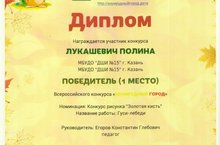 Поздравляем Лукашевич Полину, учащуюся отделения изобразительного искусства ДШИ №15 (преподаватель Егоров К.Г.) с победой во Всероссийском конкурсе "Изумрудный город"