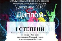 Поздравляем учащихся ДШИ №15 - победителей Международного фестиваля-конкурса хореографического искусства "Движение 2016" !