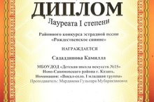 Поздравляем учащуюся ДШИ №15 Сададдинову Камиллу (пропадаватель Марданова Г.М.) с победой в Городском конкусре эстрадного вокала "Рождественское сияние" - Диплом лауреата I степени