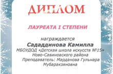 Лауреат I степени - Сададдинова Камилла ( преподаватель Марданова Г.М.)