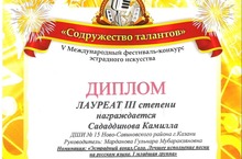 Поздравляем Сададдинову Камиллу, учащуюся эстрадного отделения ДШИ №15, с получением диплома лауреата III степени в V Международном фестивале конкурсе эстрадного искусства "Содружество талантов".