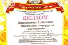 Поздравляем вокальную шоу-группу "Серпантин", эстрадного отделения ДШИ №15, с получением диплома дипломанта I степени в V Международном фестивале конкурсе эстрадного искусства "Содружество талантов".