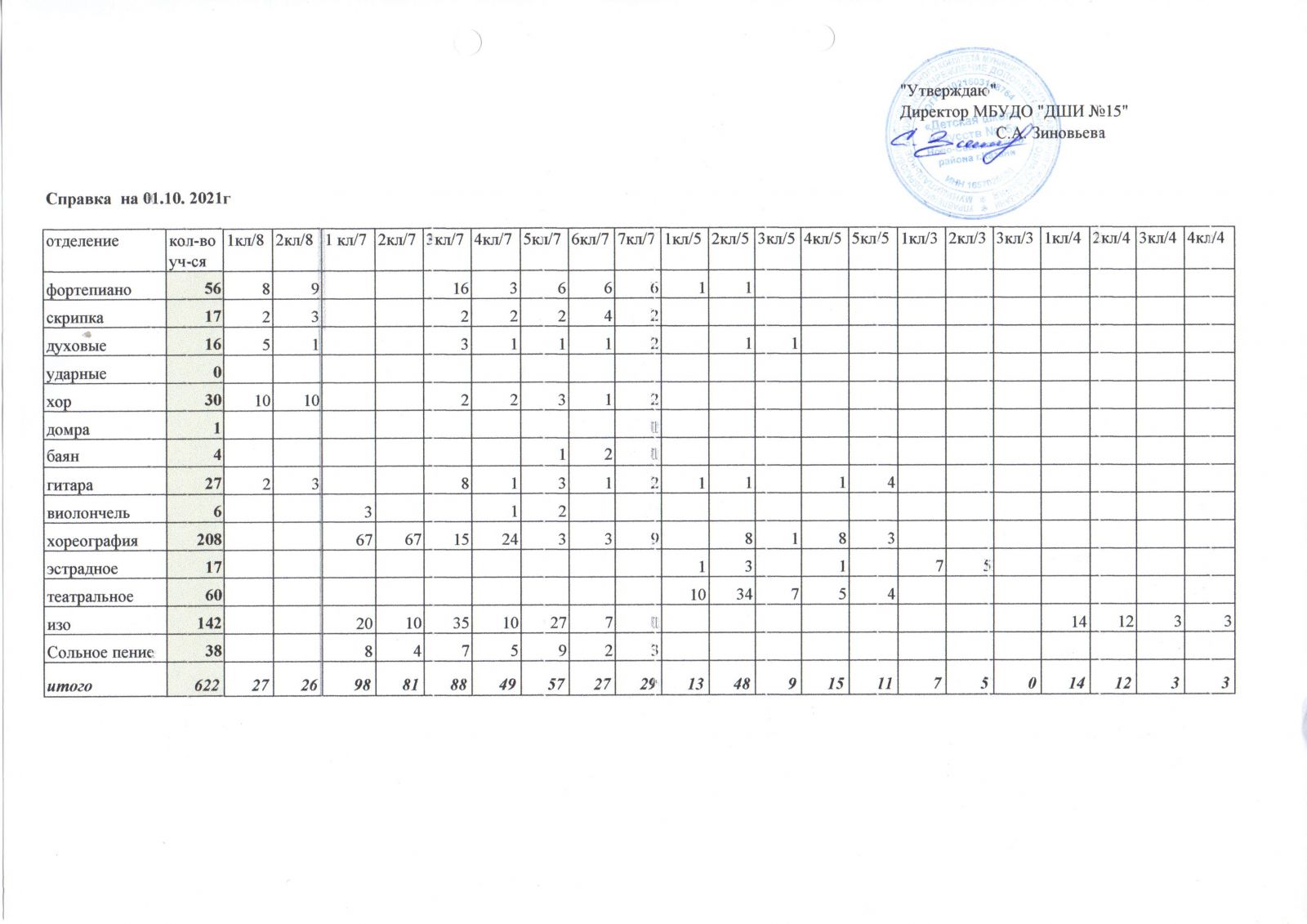 Общая численность обучающихся - 622 обучающихся, из них: