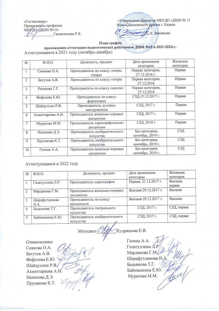 План-график прохождения аттестации педагогических работников ДШИ №15 в 2021-2022гг.