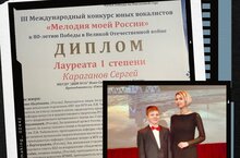 Поздравляем ученика 6 класса Караганова Сергея и его преподавателя Ожегину К.А. с победой в III Международном конкурсе юных вокалистов "Мелодия моей России"! Конкурс проходил с 20 по 23 февраля в Москве и был приурочен к 80-летию Победы в Великой Отечественной войне.