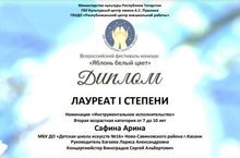 21 мая 2023 года в Казани состоялся Всероссийский конкурс-фестиваль "Яблонь белый цвет". Поздравляем Сафину Арину (преп. Багаева Л.А., концертмейстер Виноградов С.А.) с дипломом лауреата I степени и желаем дальнейших творческих успехов!