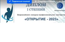 Поздравляем Багаеву Ларису Александровну с дипломом I степени всероссийского конкурса профессионального мастерства "Открытие - 2023"!