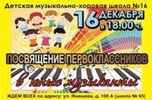 16 декабря в 18.00 в актовом зале СОШ №85 состоится праздник для первоклассников "Посвящение в юные музыканты". Приглашаем всех желающих.