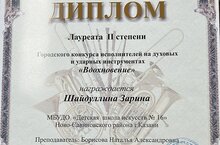 Обучающиеся нашей школы приняли участие в городском конкурсе исполнителей на духовых и ударных инструментах «Вдохновение». Результаты: