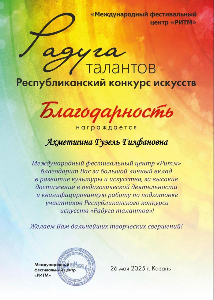 8. Ахметшина Г.Г. Республиканский конкурс искусств «Радуга талантов»