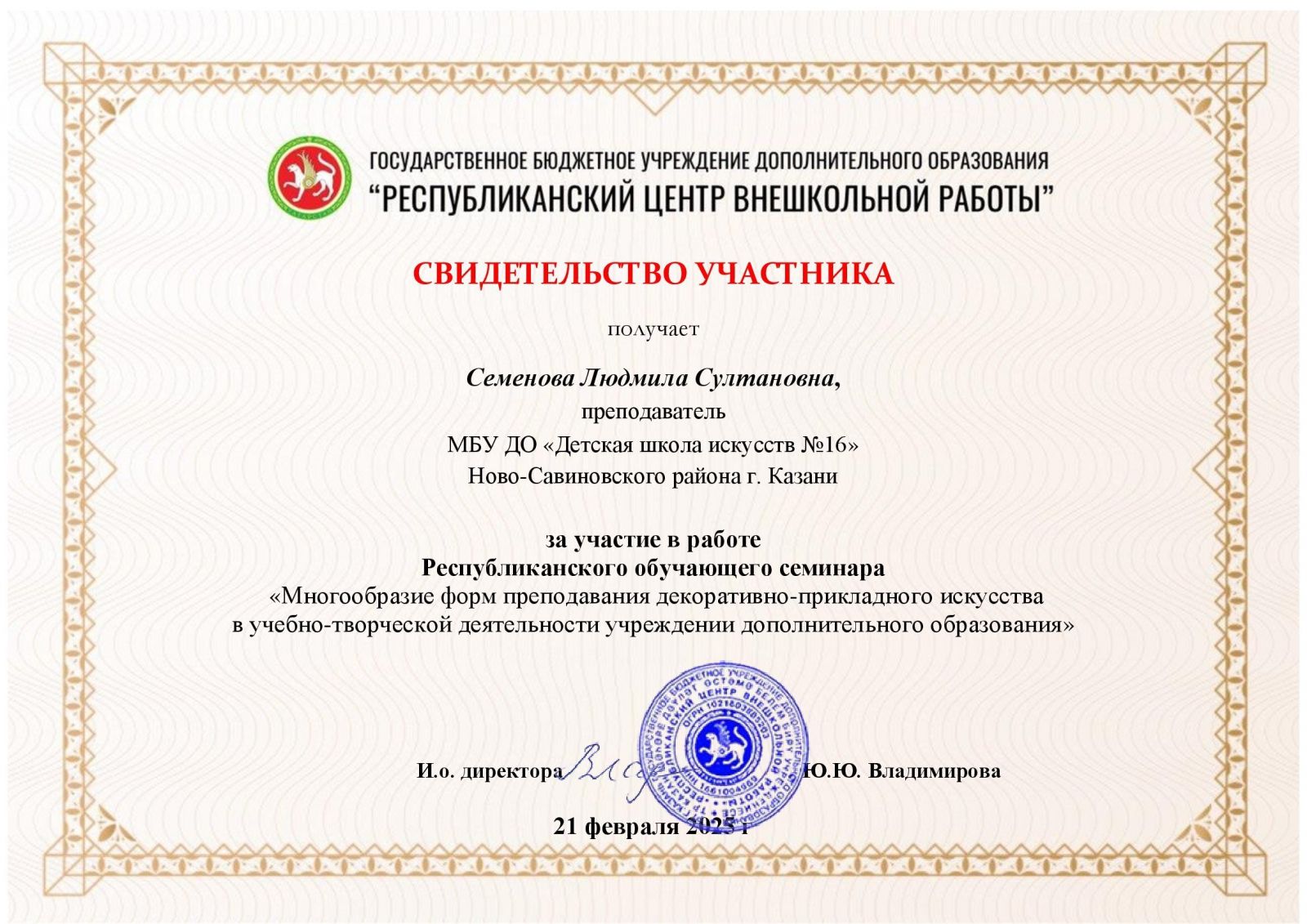 8. Груйич М.М.Республиканский практический семинар «Формирование системы эффективного взаимодействия школы и семьи в условиях реализации доп.общеобраз.программ худож.направленности», свидетельство участника