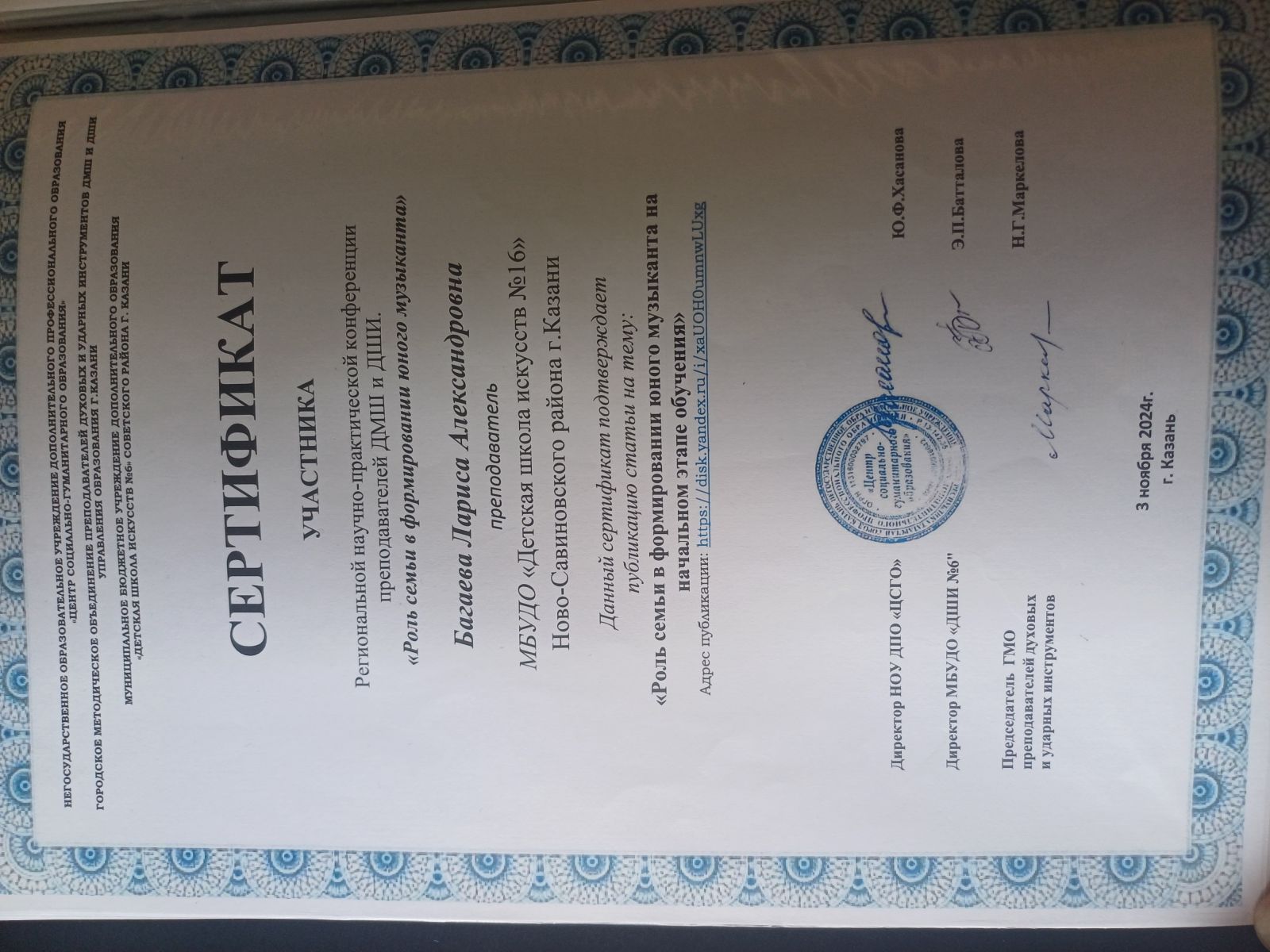 3. Нигматуллина Г.Ш. VI Республиканский конкурс "Музыкальная семья"