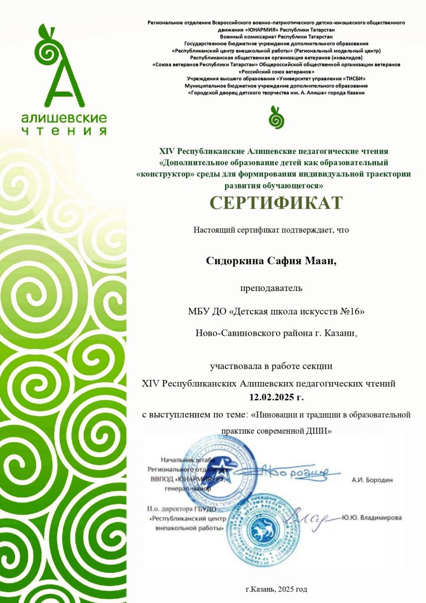 8. Сидоркина С.М. XIV Республиканские Алишевские педагогические чтения. Сертификат (выступление)