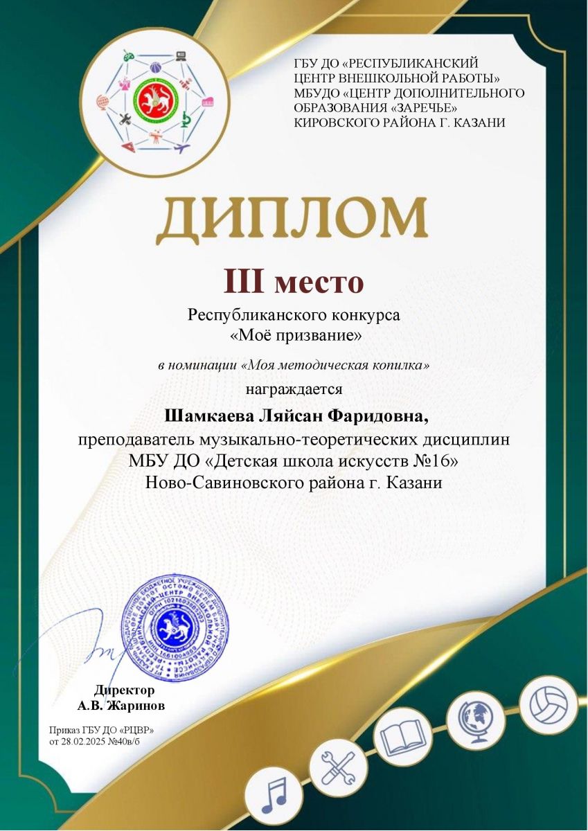 11. Шамкаева Л.Ф. Диплом.3 место. Республиканский конкурс "Мое призвание"