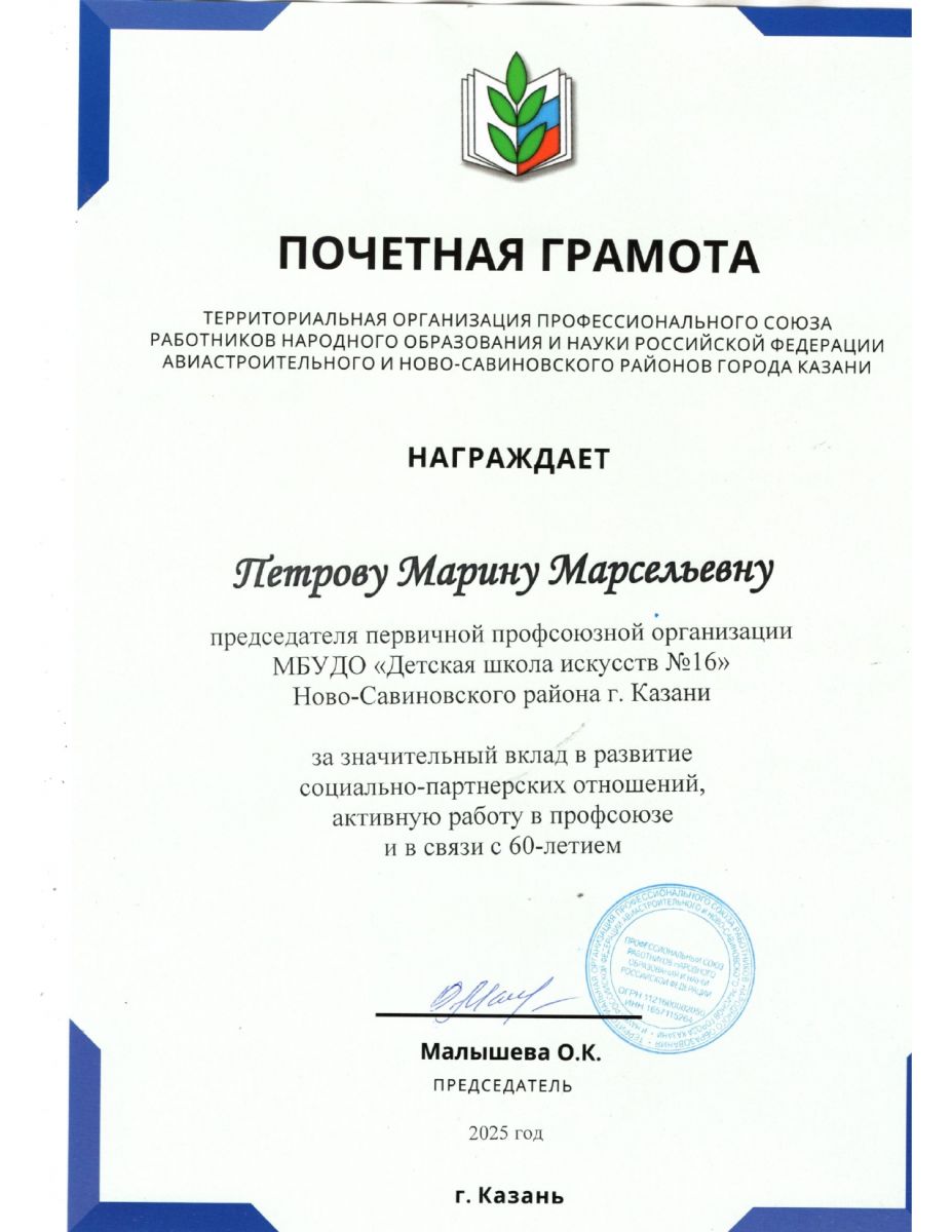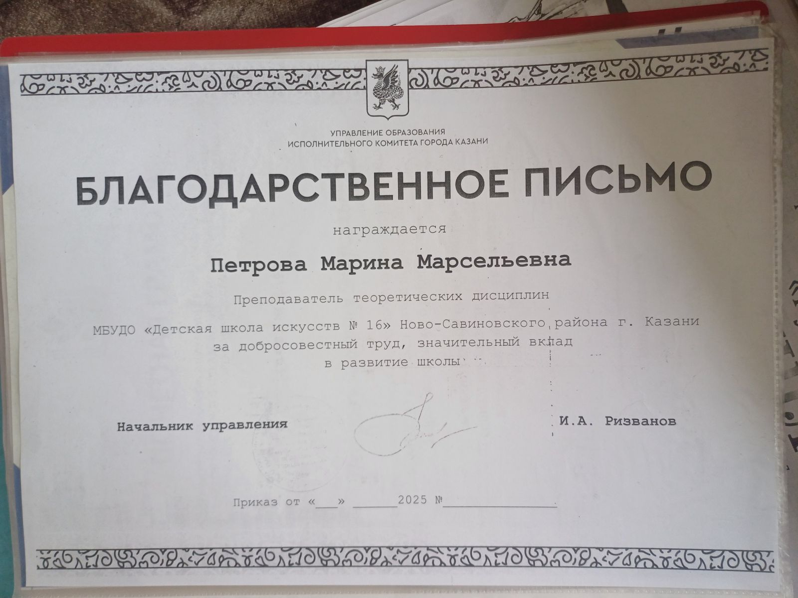 42. Петрова М.М. Благодарственное письмо "За добросовестный труд, значительный вклад в развитие школы"