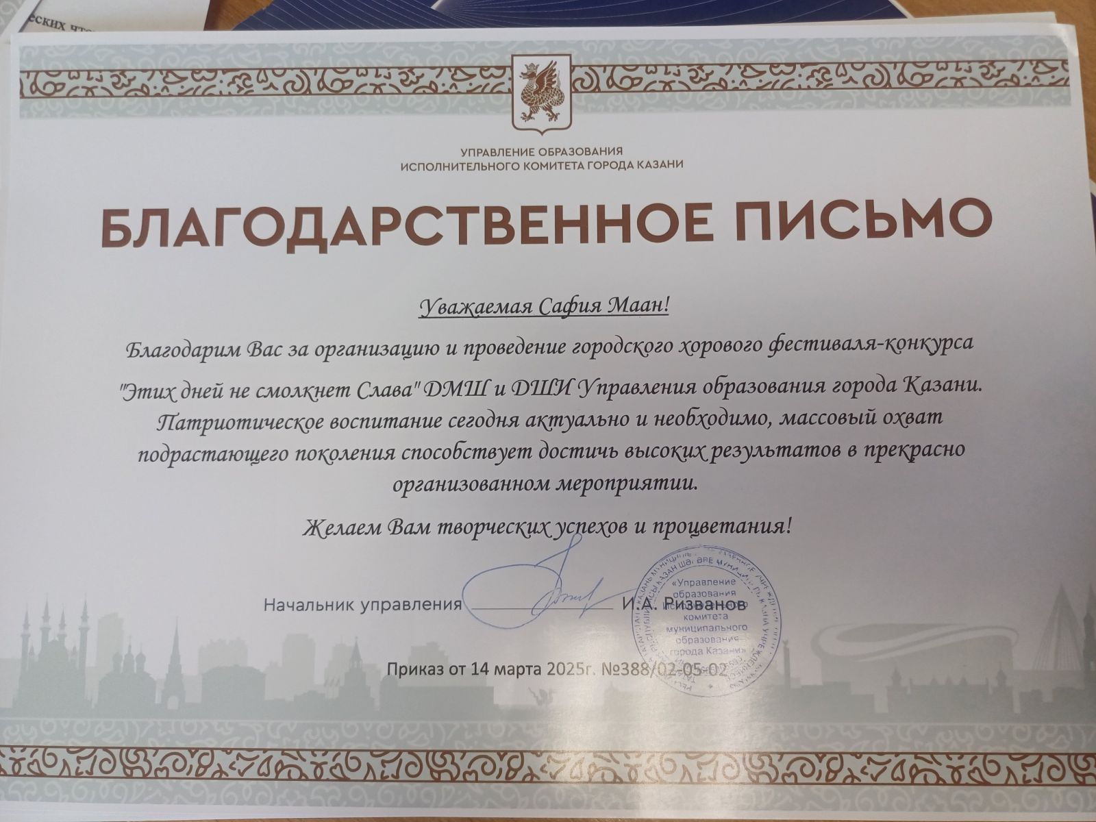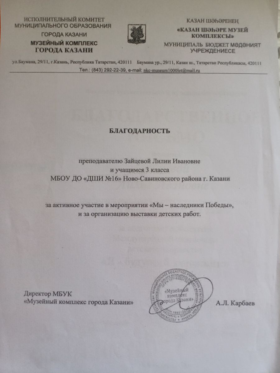49.Борисова Н.А., Каюкова Ю.А., Муслимова Диляра. Благодарственное письмо. Концерт-лекция «Музыка Великой Победы».