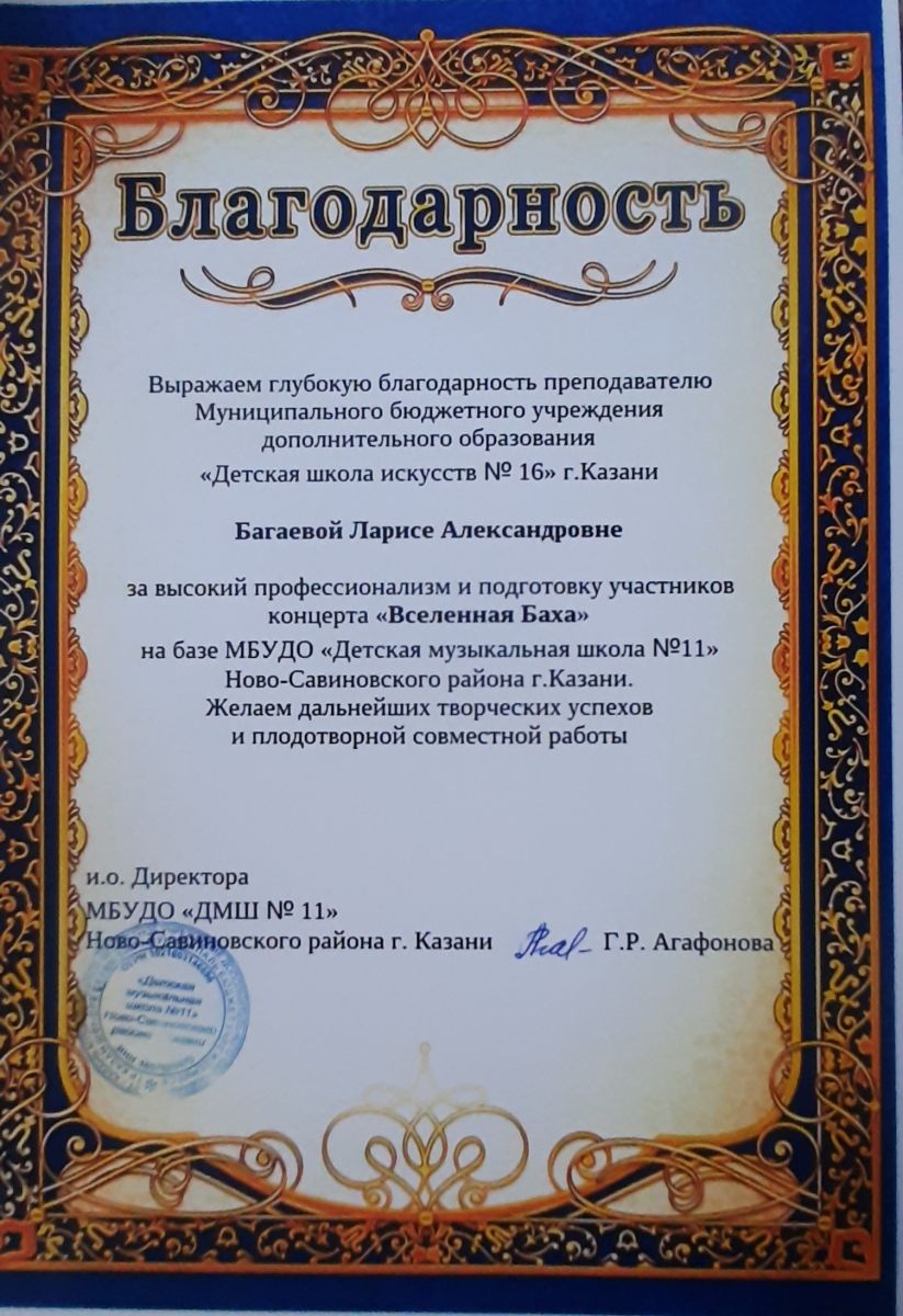 23. Багаева Л.А. Благодарность. Концерт "Вселенная Баха"