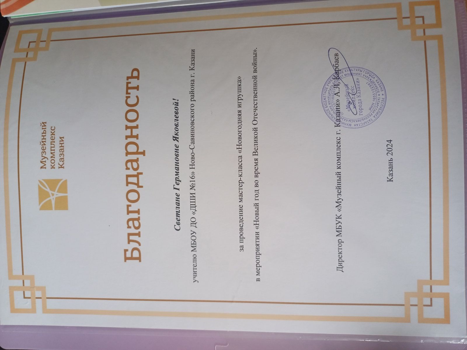 15. Яковлева С.Г. Благодарственное письмо от филармонии за выставку на новогоднюю тематику
