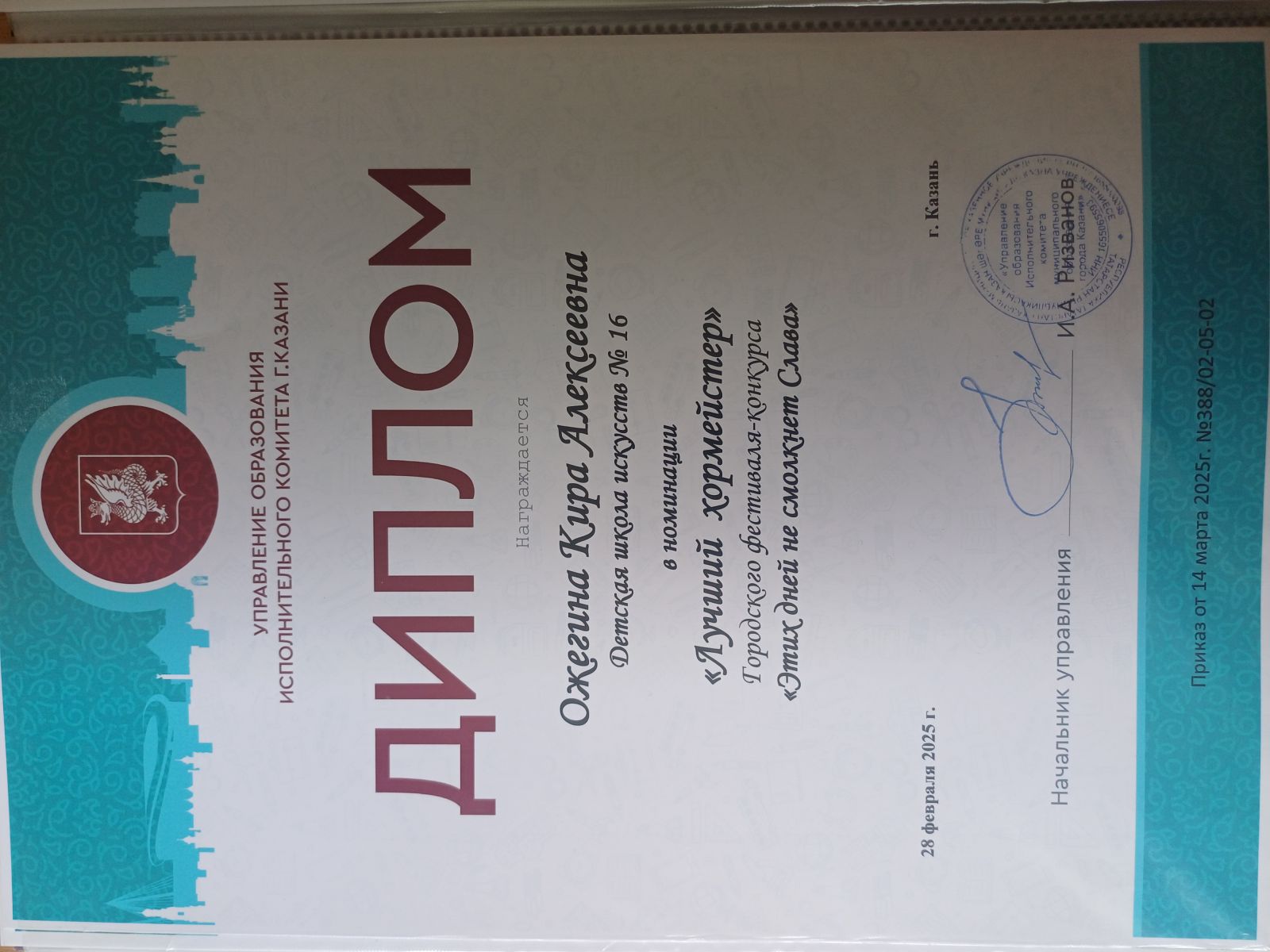 8. Ожегина К.А. Диплом "Лучший хормейстер". Городской фестиваль-конкурс "Этих дней не смолкнет Слава"