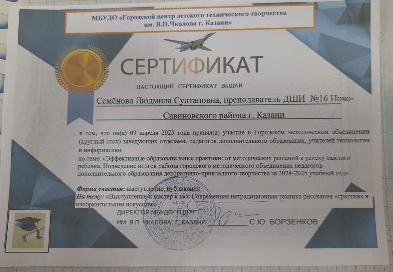 25. Семенова Л.С. Благодарность. Выставка работ Учитель-ученик «Лица Победы», посвященная 80-летию Победы в ВОв