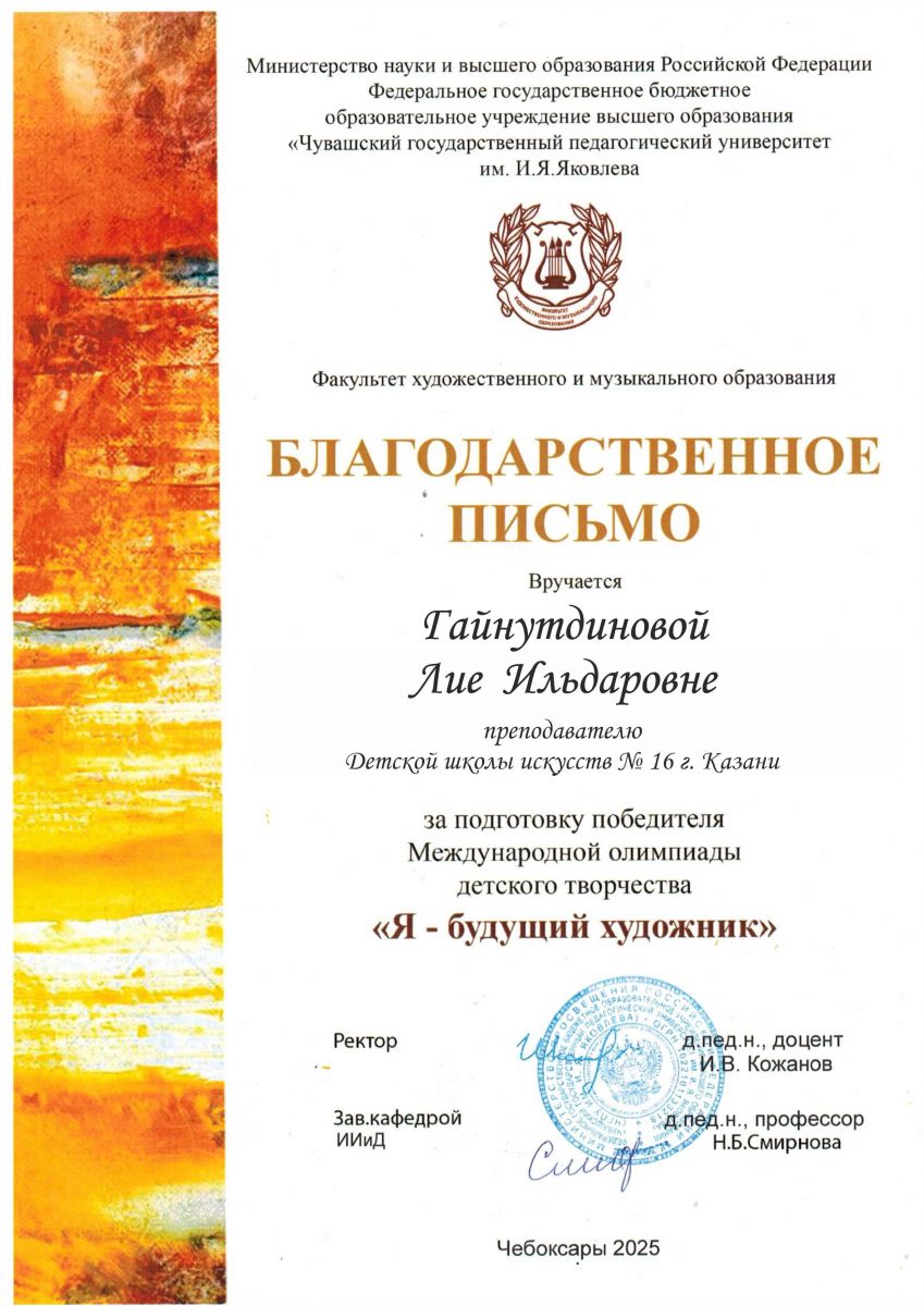 9. Гайнутдинова Л.И. Благодарность. Международный многожанровый конкурс-фестиваль «Сундук чудес»