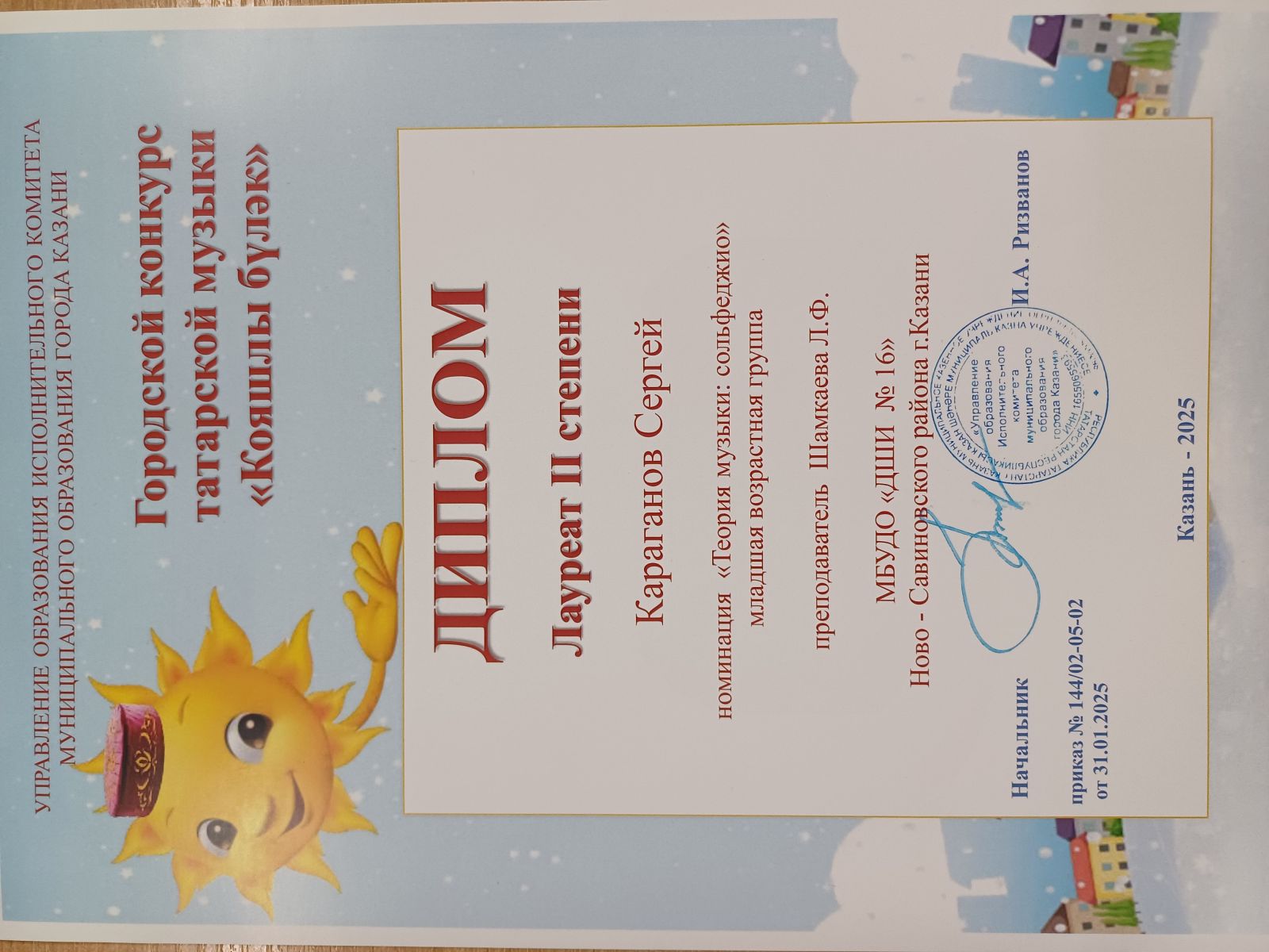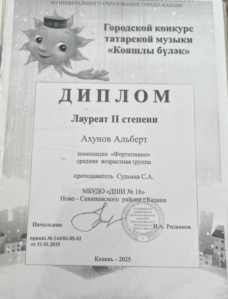44. Хайруллин Ислам - лауреат 2 степени. Городской конкурс "Кояшлы булэк"