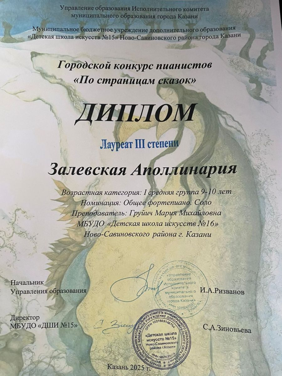 35. Залевская Аполлинария. Лауреат 3 степени. Городской конкурс пианистов "По страницам сказок"