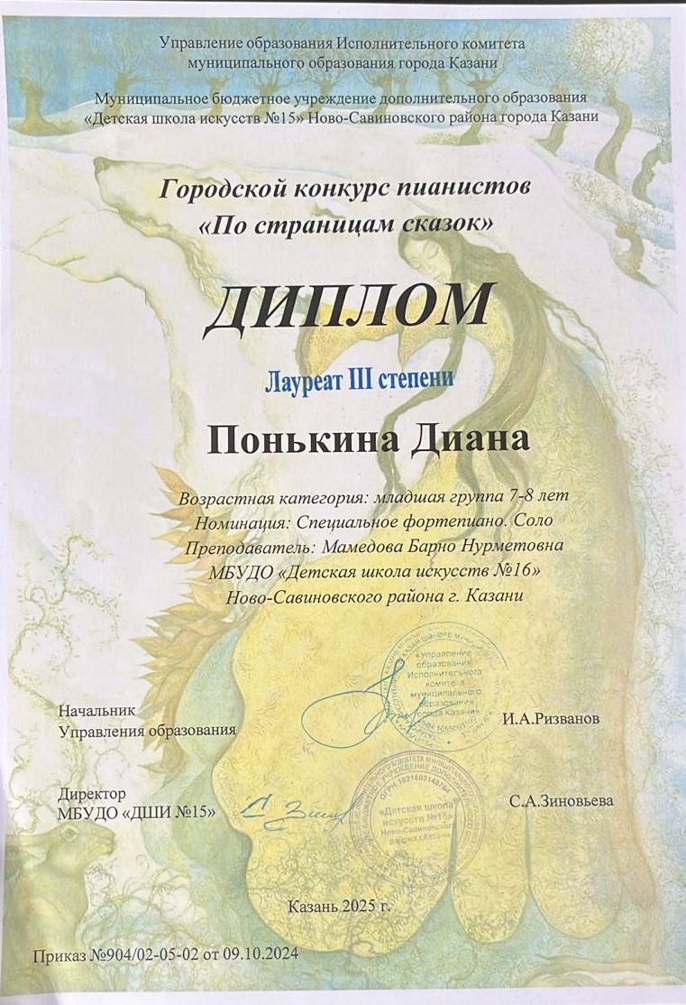 33. Понькина Диана. Лауреат 3 степени. Городской конкурс пианистов "По страницам сказок"