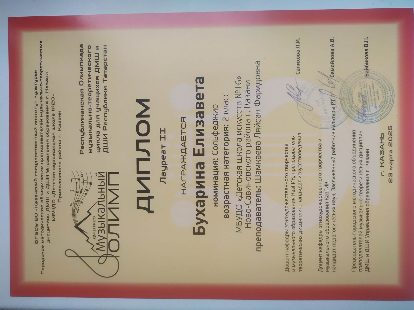 48. Бухарина Елизавета - лауреат 2 степени. Республиканская олимпиада «Музыкальный олимп»