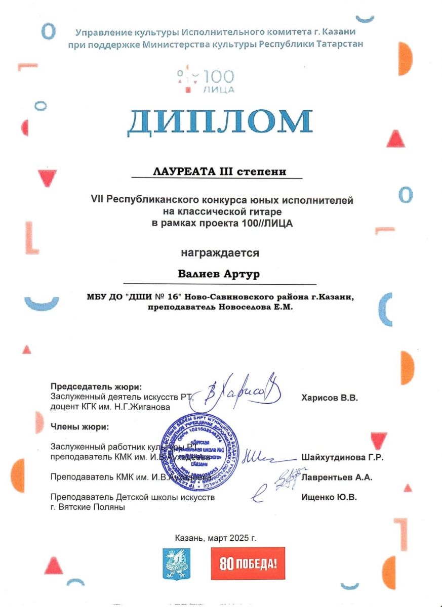 25. Адылов Артур. Диплом 3 степени. Республиканский творческий конкурс «Родники народов Поволжья»