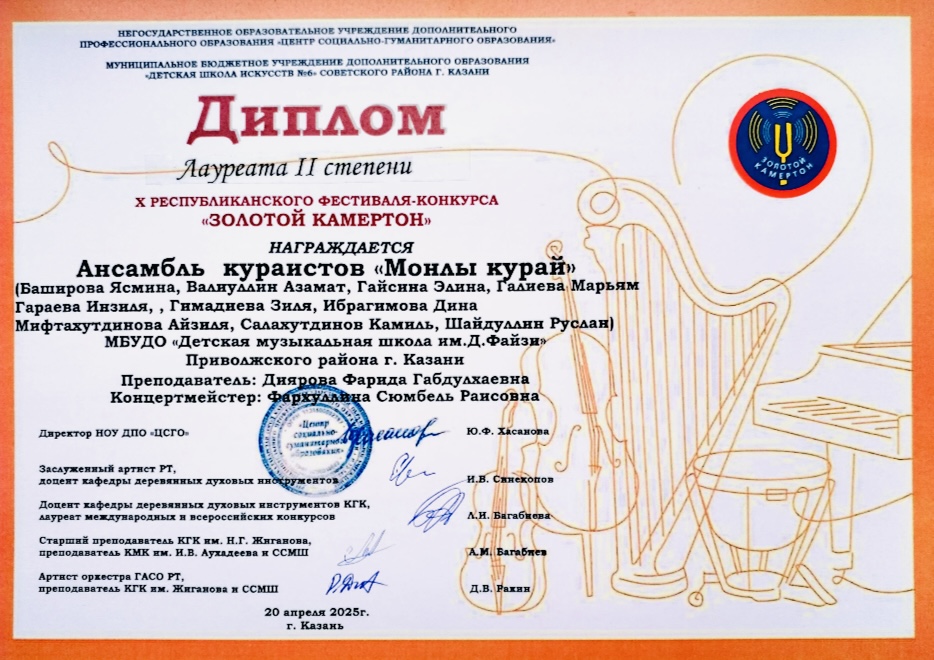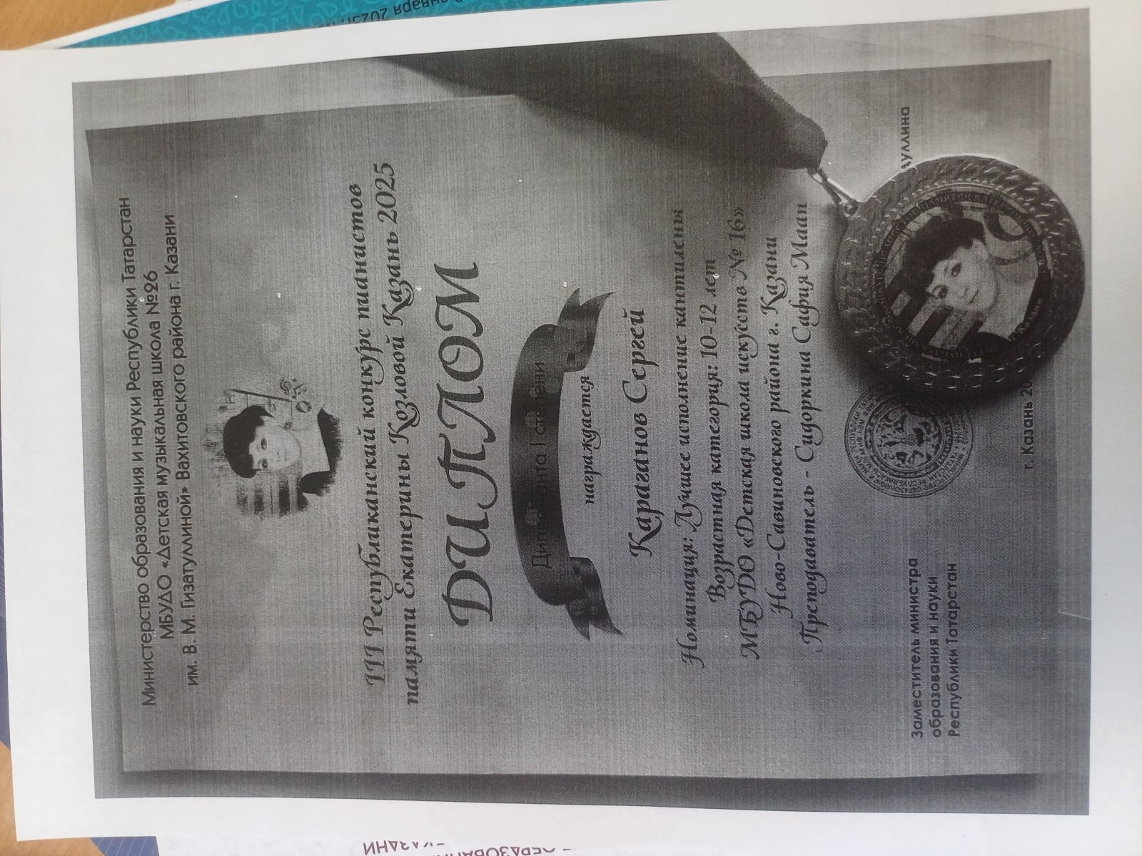 6. Асадуллин Ирек, Асадуллина В.И. -лауреат 3 степени. VI Республиканский конкурс «Музыкальная семья» в рамках республиканского конкурса детского творчества 100/лица