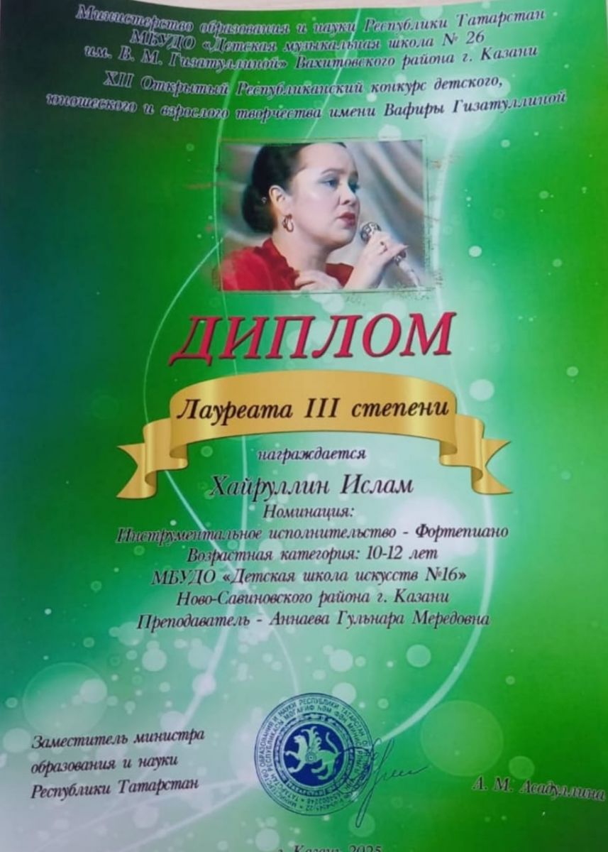 35. Хайруллин Ислам - лауреат 3 степени. Республиканский конкурс имени В.М.Гизатуллиной