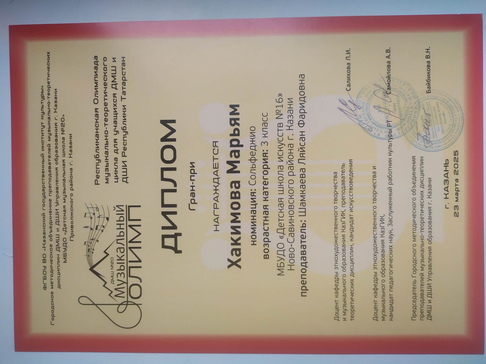 45. Хакимова Марьям - Гран-при. Республиканская олимпиада «Музыкальный олимп»