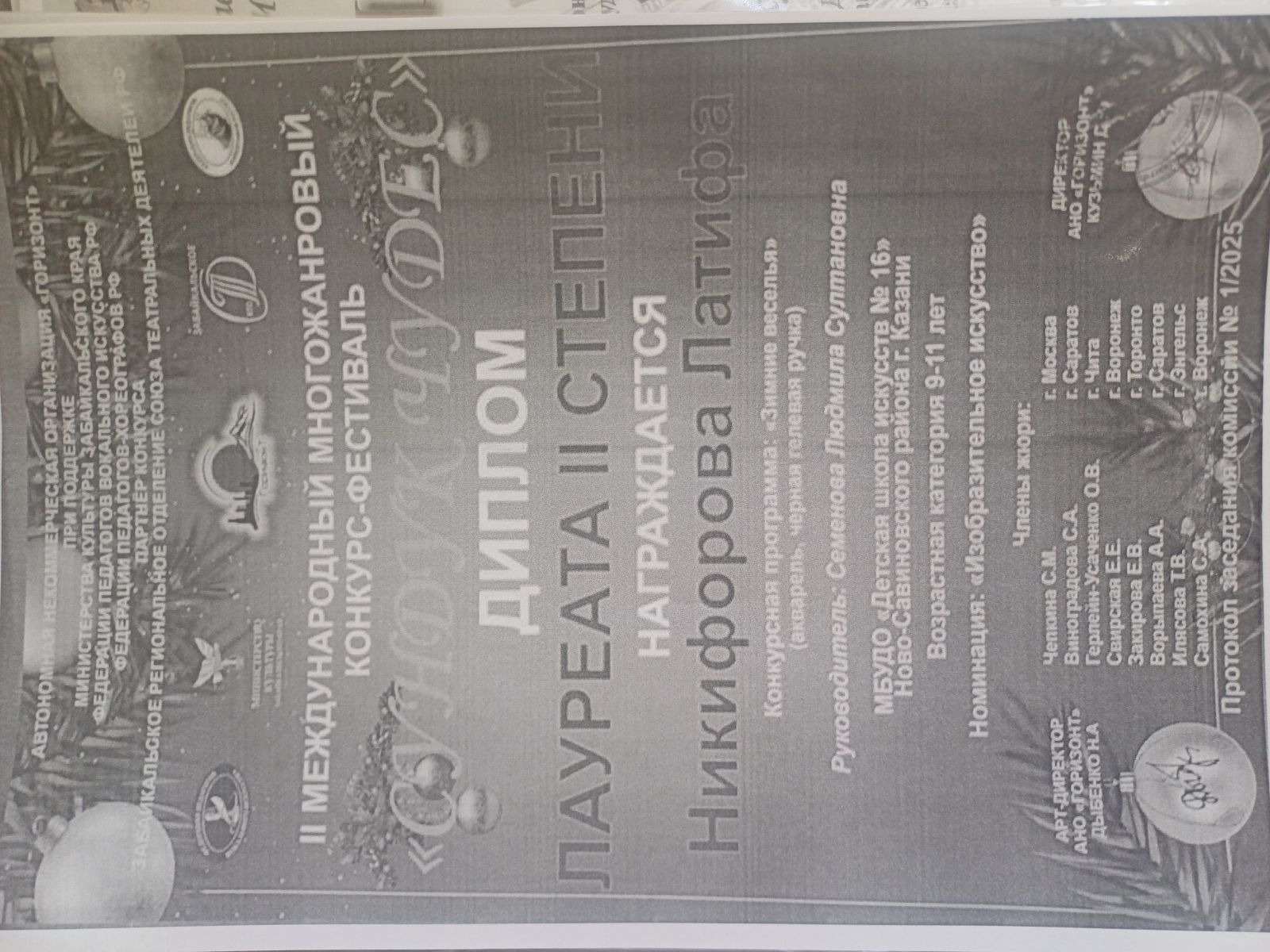 8. Ибатуллина Гузель - лауреат 1 степени. Международный конкурс искусств «В ритме времени»