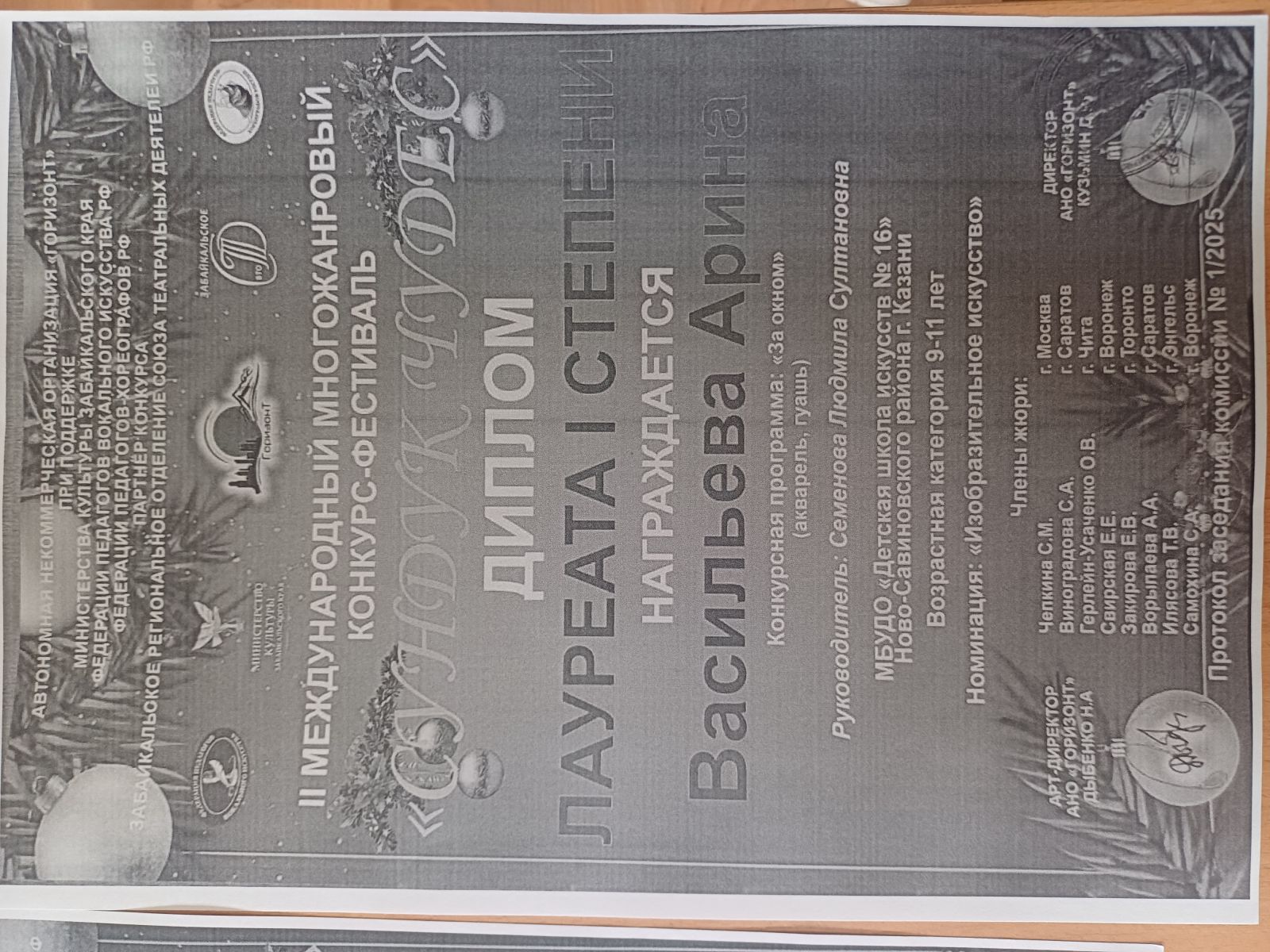 25. Сафина Алия - лауреат 3 степени. Международный многожанровый конкурс-фестиваль «Сундук чудес»