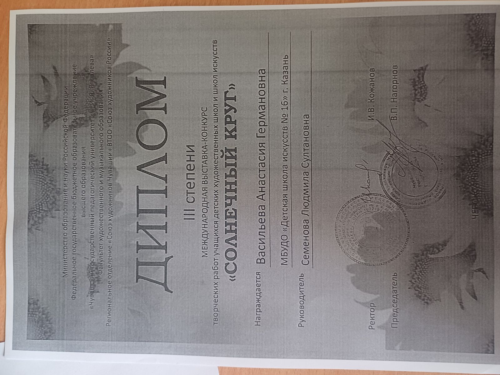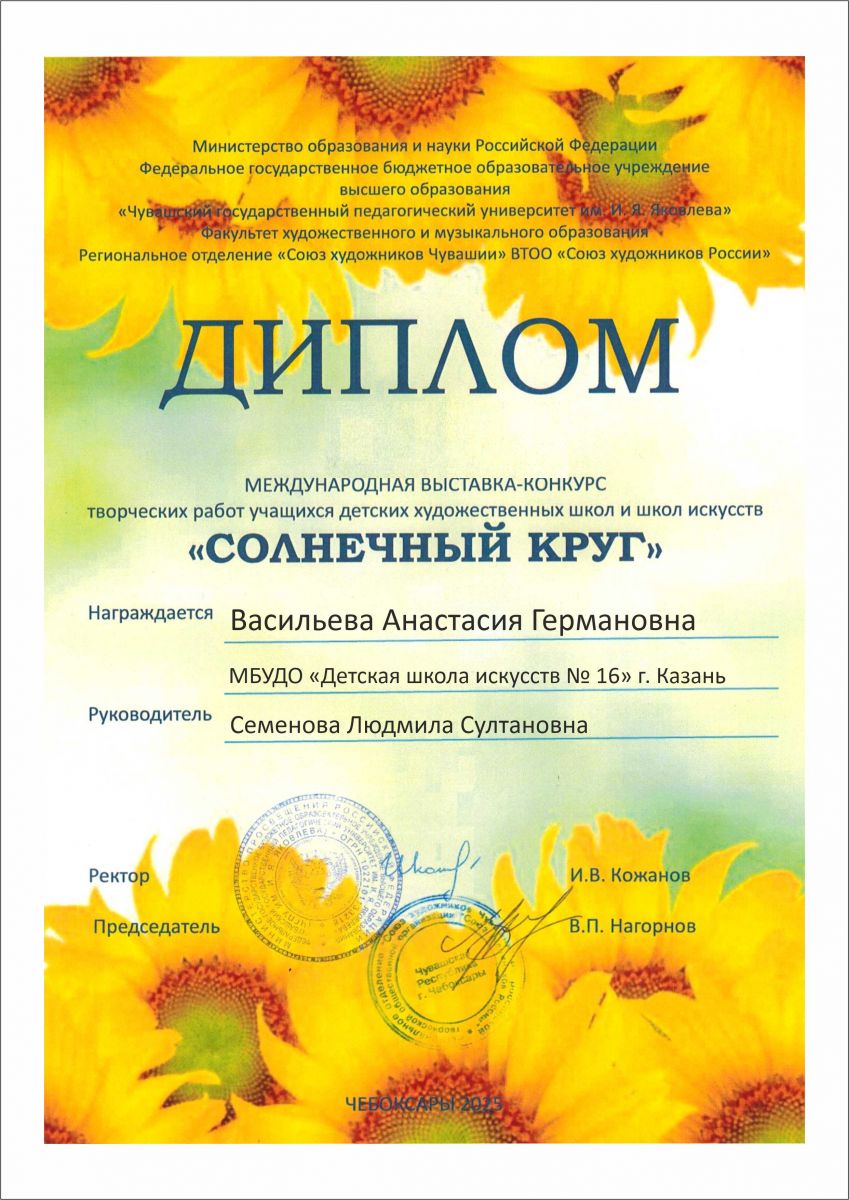 2. Васильева Анастасия. Диплом. Международная выставка-конкурс «Солнечный круг»