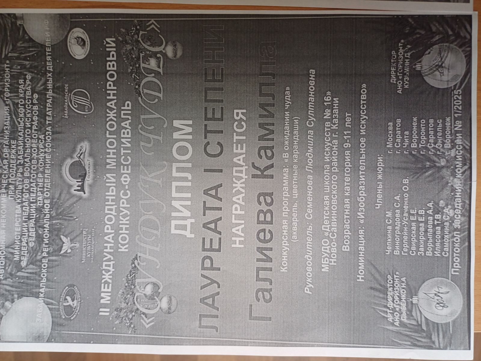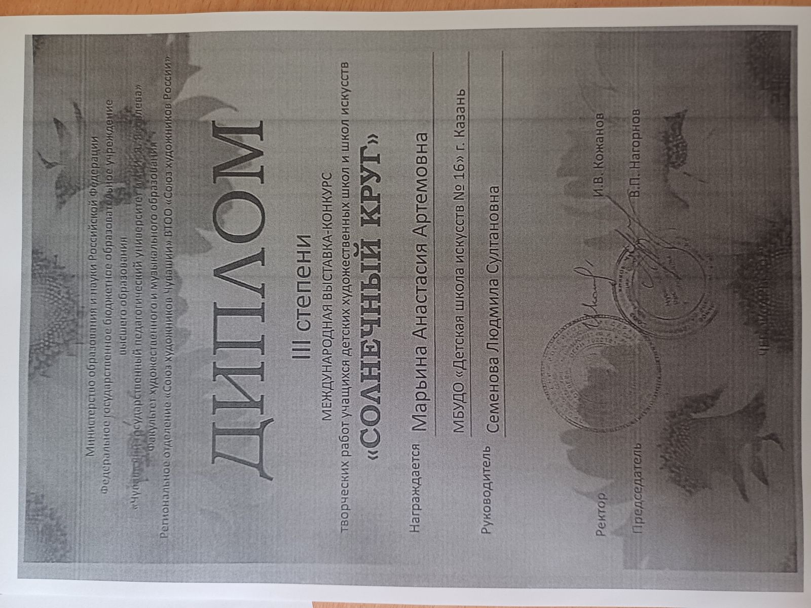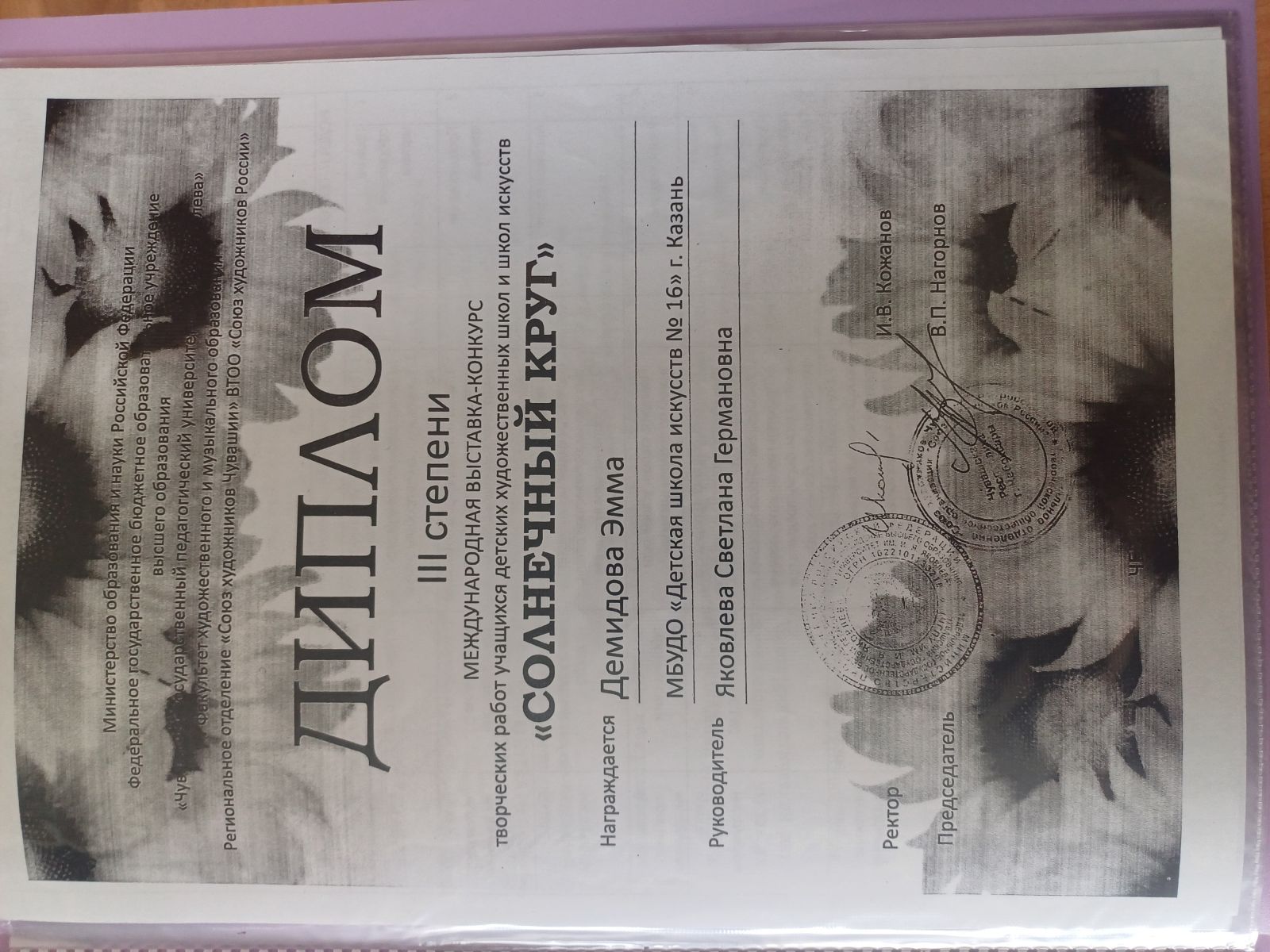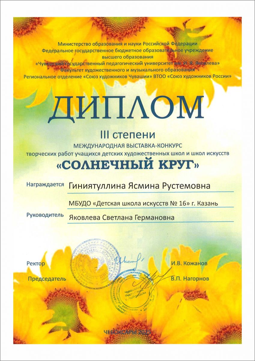 44. Гиниятуллина Ясмина. Диплом 3 степени. Международная выставка-конкурс «Солнечный круг»
