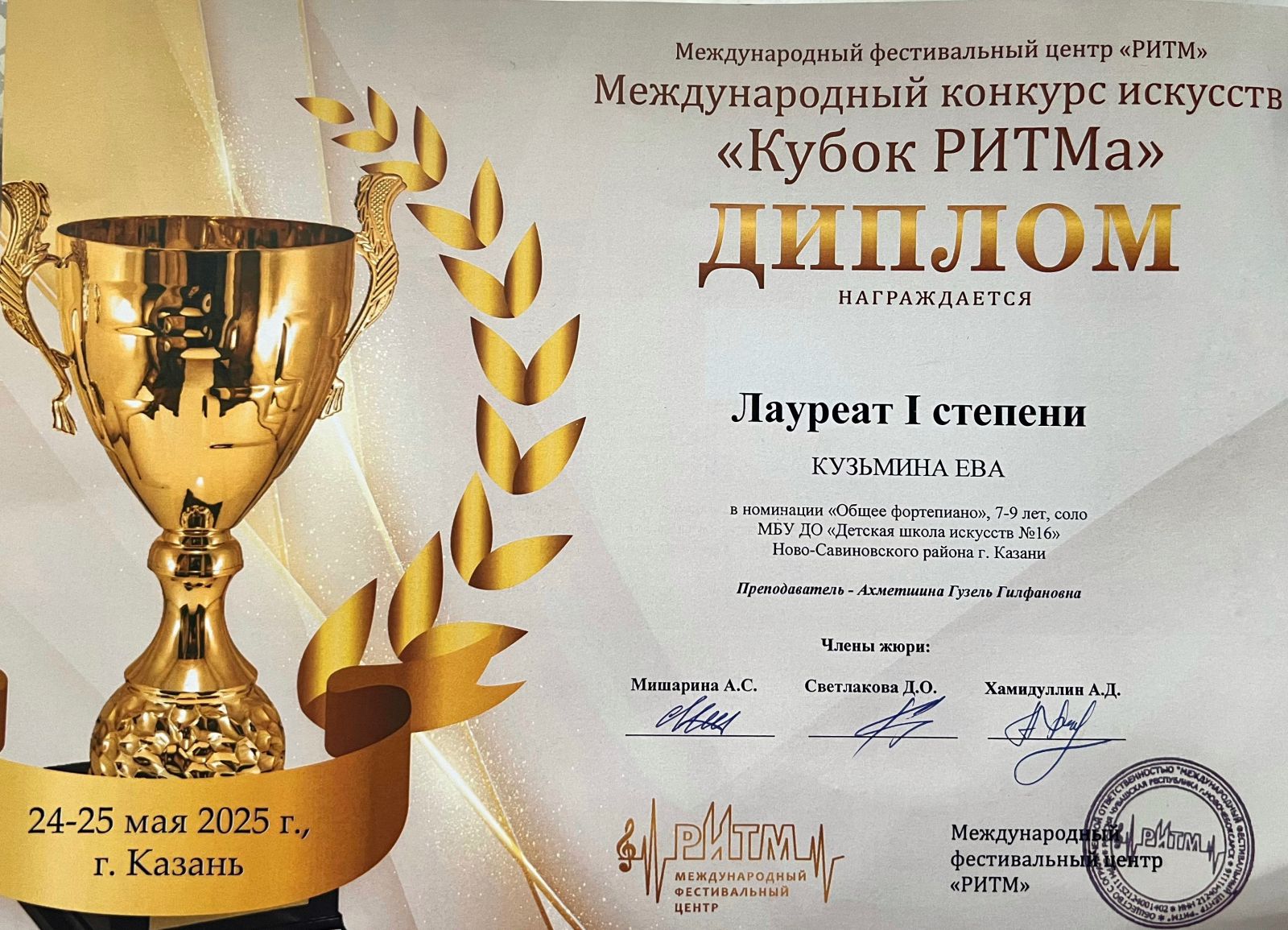 56. Кузьмина Ева - лауреат 1 степени. Международный конкурс искусств «Кубок РИТМа»