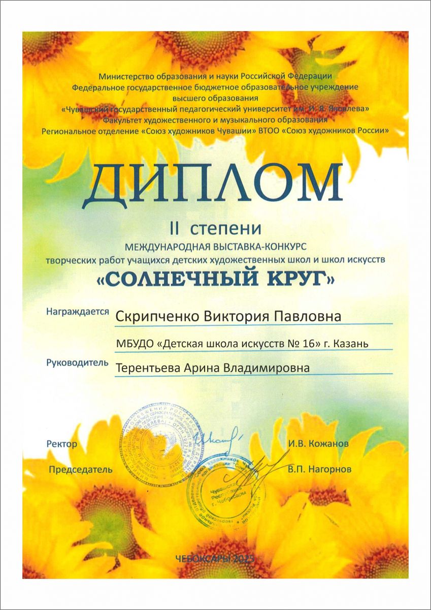 41. Скрипченко Виктория. Диплом 2 степени. Международная выставка-конкурс «Солнечный круг»