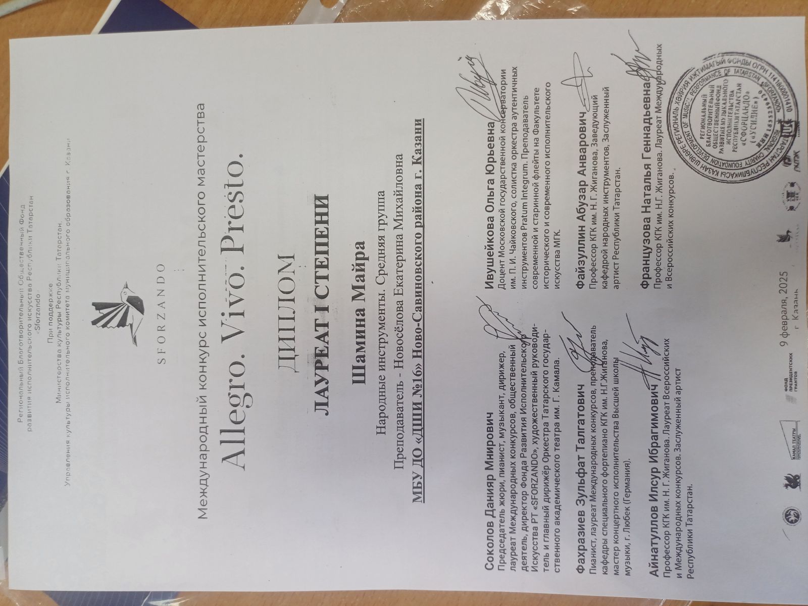 1. Лищенко Андрей - диплом. Международный конкурс исполнительского мастерства «Allegro.Vivo.Presto»
